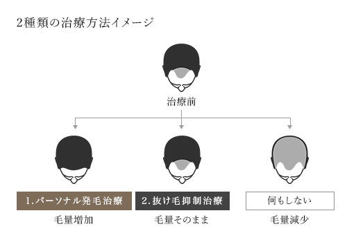 予防的な目的であれば単剤処方治療、毛量を増やしたいならアドバンスト発毛治療がおすすめです。なお、当院の患者様のほとんどがアドバンスト発毛治療を選択されています。