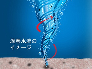 なるほど~、と思いながらも、「ん? 渦巻き水流???」。施術を受けながらビチャビチャになるのかしら? と不安に。しかし、肌に当たるハンドピースチップ中央の穴から、美容液成分をたっぷり含んだ薬液が噴射され(図①)、チップの中で渦巻き状に回転しながら皮脂や汚れを浮かせ、剥離された汚れ(図②)は、出口専用の穴から吸引排出(図③)される仕組み。顔がびしょ濡れになることはなかったのですね(ホッ)。さらに、顔を拭きとる作業がないので、無駄な摩擦がなく、肌に負担をかける心配もなし。仕組みがわかり納得したので、いよいよ施術を受けることに。