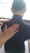 2つ目は、デスクワークの人に多い、肩の巻き込み。肩が少し前にいってしまった状態です。猫背の結果、そうなってしまい、胸の筋肉を締め付けるのです。これを解消するのは、キレイな立ち姿になること。