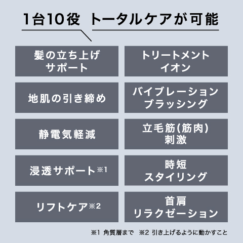 地肌と顔は1枚の皮膚で繋がり、表情や頭部全体の動きに関わる組織も密接に関連していることから、地肌全体の引き締めによってスッキリとした印象が期待できるのはもちろん、顔にもリフトケア※2として使用できます。