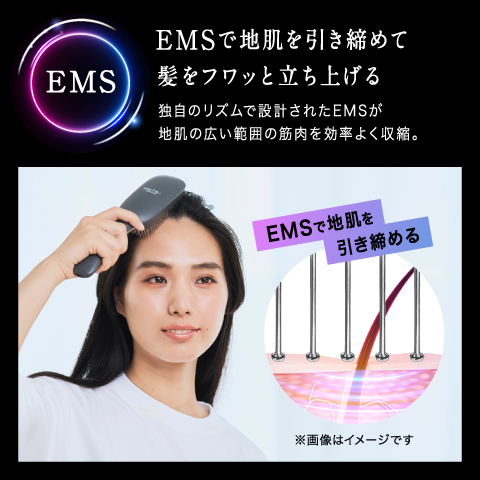 自宅でもサロン帰りのような状態を叶えたいという想いから、国内最多※1331本のピンという仕様にこだわりました。331本のピンから流れる独自リズムのEMSにより、地肌全体を効率よく収縮させて引き締める効果を実現しています。![]()